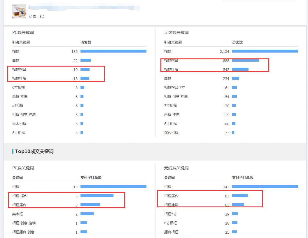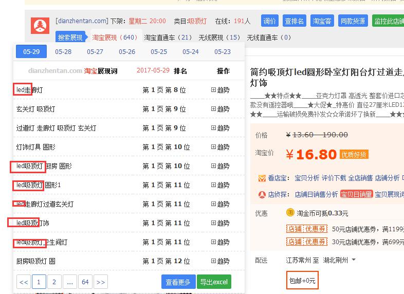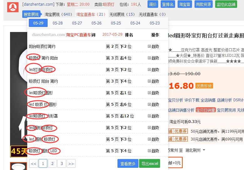 直接通过插件来找到产品的重复率最高的词,像这种词就应该是整个产品中权重最大,数据最好的关键词。而淘宝展现和直通车都能够重复出现的词,就是竞争对手重点推广的关键词。