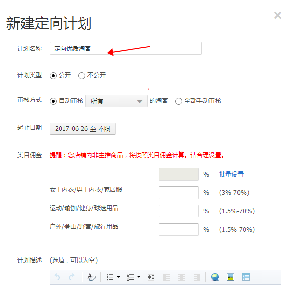 通用计划:所有的淘客都可以看见他们可以用里面又佣金的产品去推广但是建议通用的佣金不要给的太高。