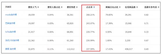 点击率是一个非常重要的指标。在用生意参谋选词的时候,可以看到每一个关键词“点击率”这个数据指标。这个指标尤其是在新品期是非常重要的,因为关键词是给你展现的机会,但是抓住机会的能力(点击率)才能真正的体现你的产品吸引力。