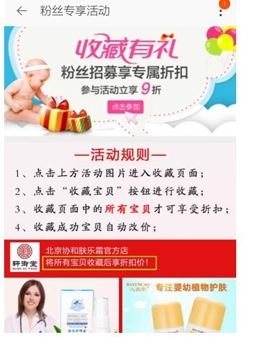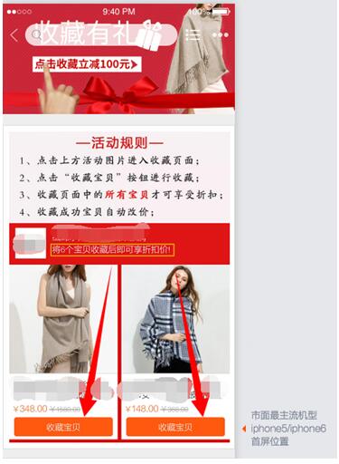 1、手淘宝贝页面显示的店铺活动头图设计要吸引顾客,并且要有诱导点击收藏的按钮,吸引买家点击;