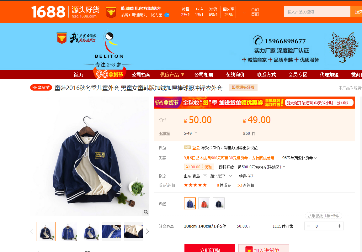 看起来这个产品还不错,我们来看看卖家的资质,点进去看了以后,发现这个卖家的货品种类非常多,价位区间不小,而且模特也不是同一个人,那么通过这几点我们就可以判断出来,这是一个分销商而不是厂家,他也是到很多地方拿货,然后去卖赚取一个差价的,那这样的供货商,我们就不考虑了。我们在选择货源的时候要选择供应产品统一的供货商,而供货产品是否统一,就从模特是否统一,产品款式是否统一还有产品价格区间大不大这三个点去进行考查。